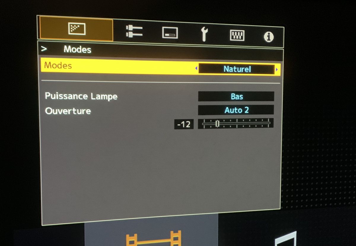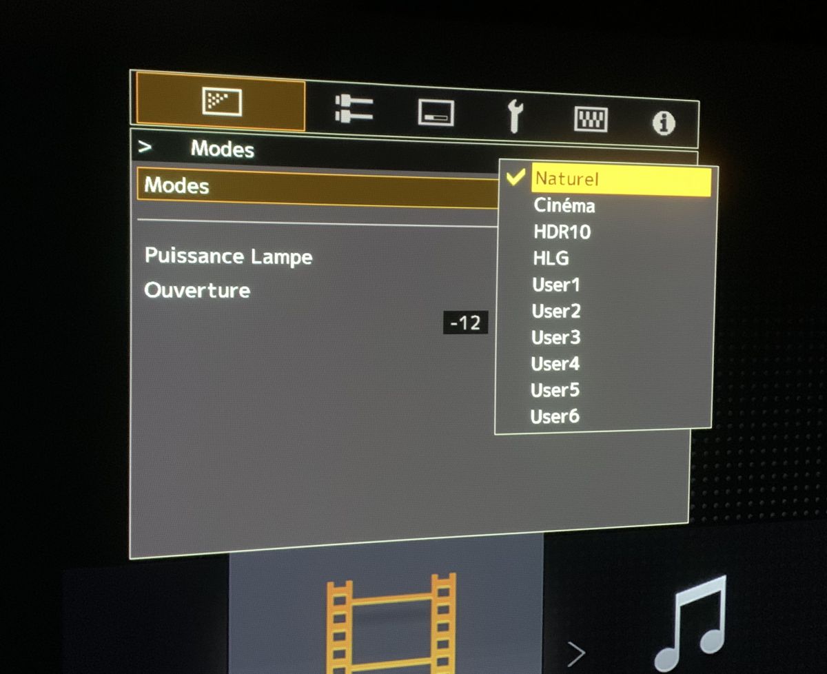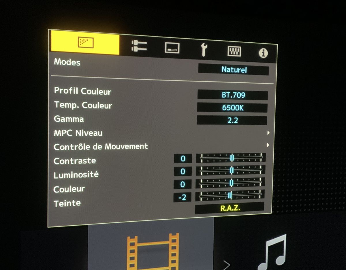 Le projecteur nous offre un ensemble classique de modes. Il en possède 10 - [Naturel], [Cinéma], [HDR10], [HLG] et 6x [utilisateur]. Nous voulons une reproduction fidèle de l’image (conformément à la norme Rec 709/D65). Le mode qui se rapproche le plus répond à cette norme est le [Naturel]. Le calibrage sera effectué sur ce mode.
