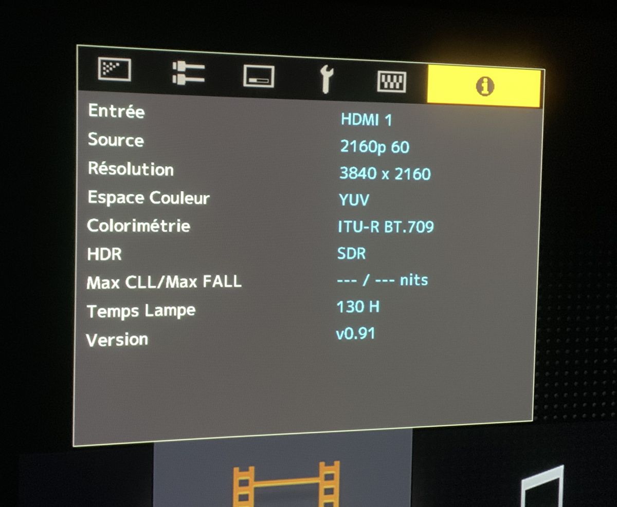 Le plus pertinent pour la projection est les valeurs pour la luminosité moyenne la plus haute et la luminosité de crête maximale "Max CLL et Max FALL".