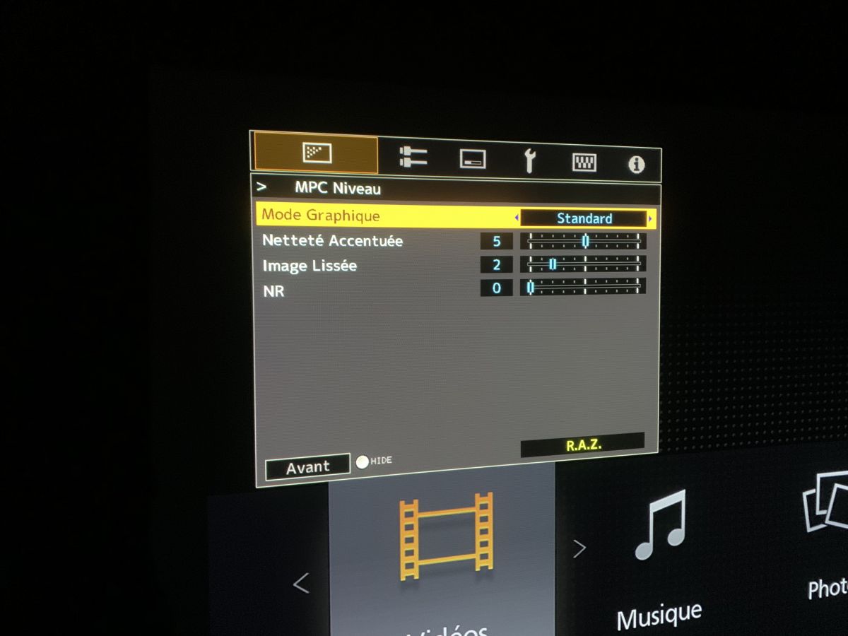 Le réglage MPC fonctionne en mode standard ou haute resolution. La netteté accentuée, image lissée et noise reduction sont toujours disponible sur le N5.