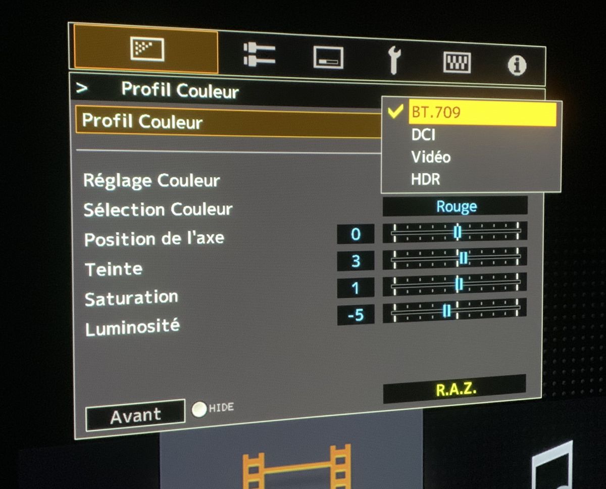 Dans le profil couleur, nous trouvons les pré-réglages suivants, BT.709, DCI, Vidéo et HDR.