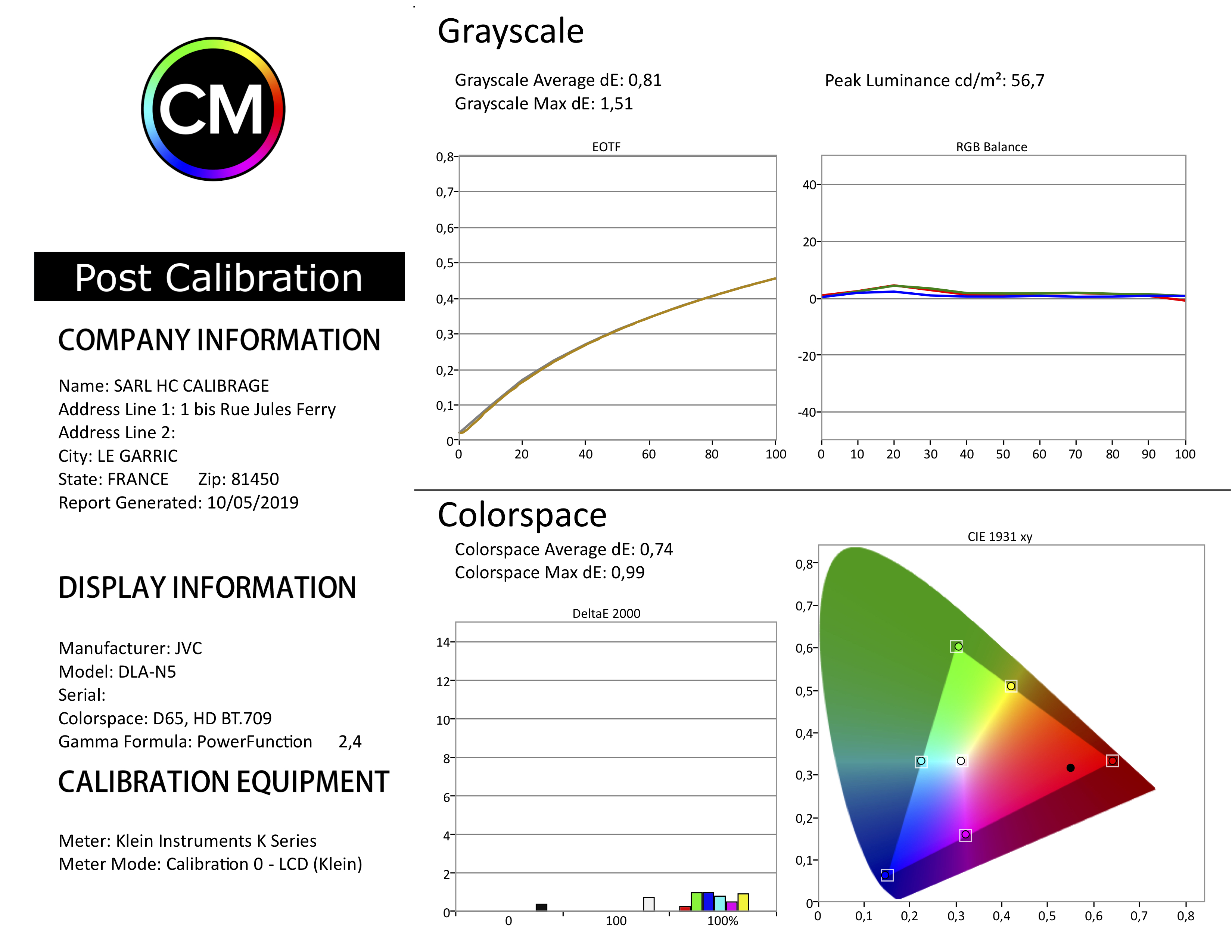 J’ai enregistré différentes métadonnées et mesuré la réaction du JVC DLA-N5. Au niveau des EOTF (gamma), j’ai rencontré les différentes limites en position "off" avec un léger éclaircissement uniforme de l’image.